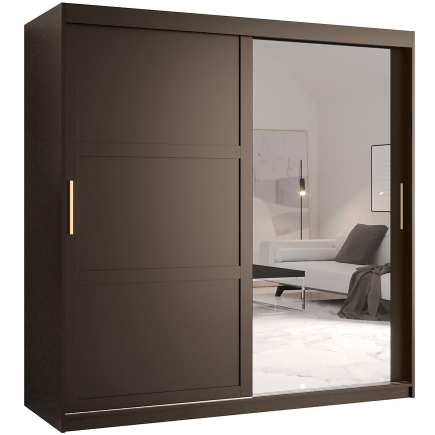Wymiary: szerokość: 150cm, wysokość: 200 cm, głębokość: 58 cm Wykonanie: korpus i fronty: płyta laminowana o grubości 16 mm, przegrody i półki: płyta laminowana 16 mm, wszystkie elementy w płycie matowej, okleina PCV, system drzwi przesuwnych marki Sevroll, uchwyt w formie listwy aluminiowej, wzdłuż drzwi, aluminiowe rączki zastosowane w drzwiach przesuwnych podkreślają jej nowoczesny styl, poprawiają jej funkcjonalność oraz zapobiegają wyginaniu się drzwi. Gwarancja: 24 miesiąceOdpowiedzi na najczęstsze pytania (FAQ)