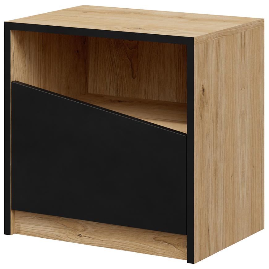 Bukowa szafka nocna SPECTRUM do sypialni Szafka nocna Spectrum bukowa do sypialni to produkt polski wykonany z wysokiej jakości drewna, to świetne uzupełnienie wystroju sypialni. Wyprodukowana została z wyjątkową starannością, ma prostokątny kształt z otwartą u dołu ramą, co nadaje szafce delikatności. Posiada praktyczną szufladę ze zgrabnym uchwytem ułatwiającym jej otwieranie. Szuflada bez problemu pomieści wszystkie drobiazgi, które chcemy mieć po ręką w sypialni, prosty blat zapewnia dodatkową przestrzeń użytkową na lampkę, książkę czy okulary. Szuflada umieszczona jest na prowadnicach, dodatkowo został zastosowany system cichego domykania oraz hamulca, który zwalnia bieg szuflady i umożliwia jej bezgłośne zamknięcie. Dużym atutem szafki są jej niewielkie gabaryty, doskonale wpisze się w wystrój małych sypialni, nie zajmując wiele miejsca. Szafka nocna Spectrum jest do wyboru w kilku odcieniach drewna bukowego, jego największa zaletą jest twardość i odporność na uszkodzenia mechaniczne, świetnie spisuje się na przestrzeni wielu lat użytkowania, ponadto cechuje je niebywała uroda. W trakcie produkcji szafki Spectrum lite drewno cięte jest na mniejsze kawałki i części ze skazami, uszkodzeniami są od razu eliminowane. Następnie wybierane są tylko najlepsze fragmenty drewna i łączone ze sobą za pomocą mikrowczepów, które pozwalają na bardzo estetyczne, praktycznie niewidoczne spojenia o wyjątkowej trwałości. Tak powstałe drewniane płyty mają idealną strukturę, piękny wygląd i gwarantują wieloletnie użytkowanie bez śladów zniszczeń. Szafka nocna Spectrum to pr...Odpowiedzi na najczęstsze pytania (FAQ)