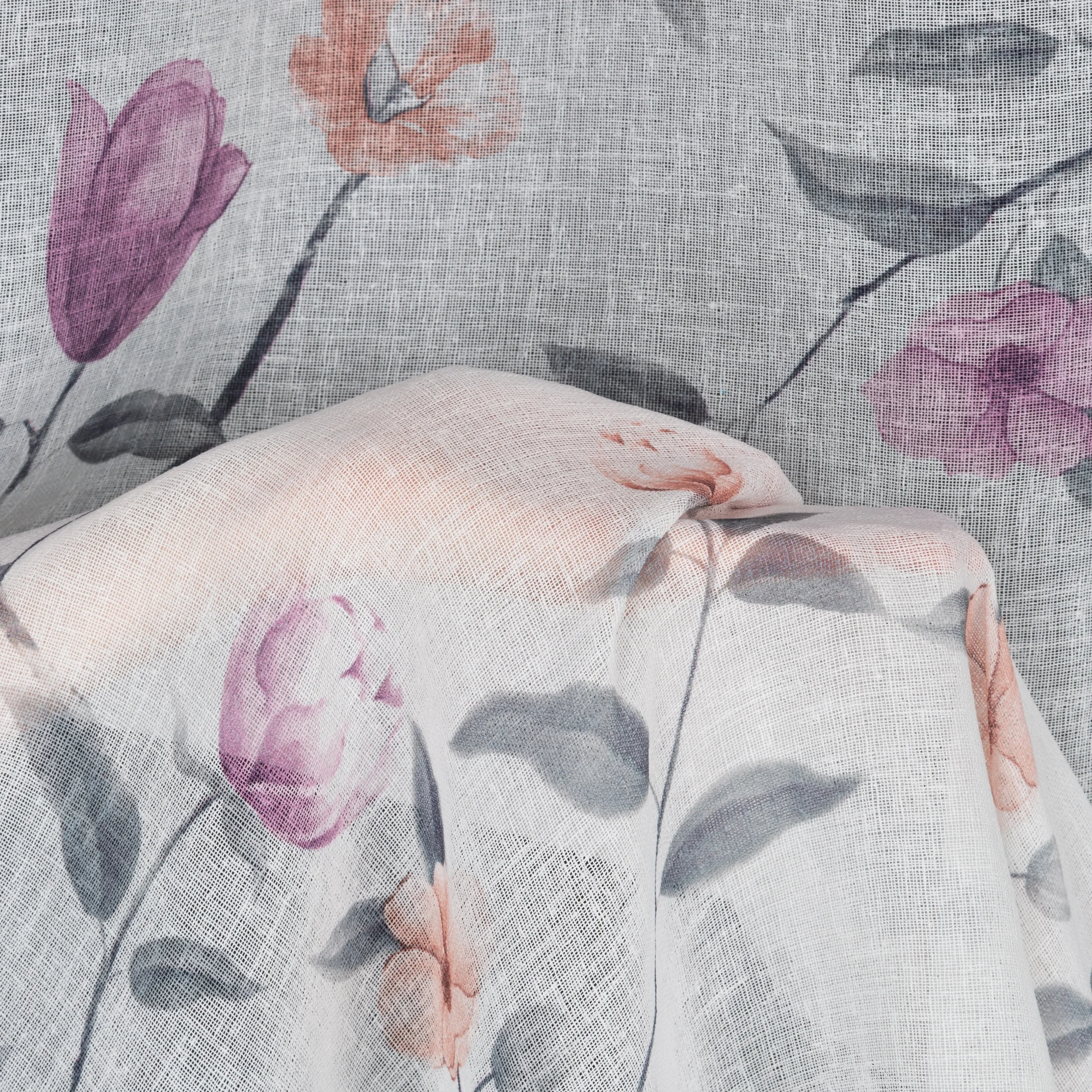Zasłona biało, różowa z nadrukiem kwiatów z etaminy 140x250 cm przelotka ANTEA Eurofirany
