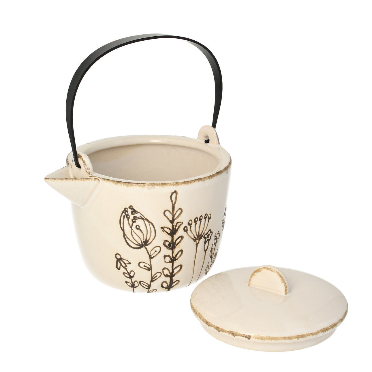 Dzbanek do herbaty z uchwytem wykonany z porcelany.Porcelanowy dzbanek o subtelnym wzornictwie. Czajniczek pokryty delikatnym kwiatowym wzorem. Doskonale sprawdzi się w codziennym użytkowaniu i podczas podejmowania gości. Wygodny metalowy uchwyt i neutralna kolorystyka tworzą spójną, lekką całość. Przepięknie skomponuje się z innymi naczyniami tej samej serii. Możliwość czyszczenia w zmywarce. Wymiary: szer. 17 cm, dł. 14 cm, wys. 14 cm.Pojemność: 1200 ml.Parametry: